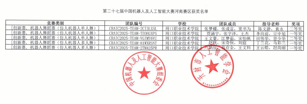 中国机器人及人工智能大赛作为教育部认可的全国赛事,已进入《全国普通高校学科竞赛排行榜》,是国内规模最大、影响力最强、专业水平最高,是检验高校机器人及人工智能领域教学成果与学生实践能力的重要平台。在第二十七届中国机器人及人工智能大赛河南省选拔赛中表现突出,斩获省赛一等奖3项、二等奖2项,并全部晋级国赛,斩获国赛二等奖3项、优秀奖1项。