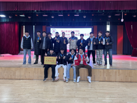 在随后的颁奖环节中,汽车与机电工程学院迎来了荣耀时刻。我院篮球代表队满怀自豪的领取冠军奖杯、奖牌与荣誉证书。这一时刻,既彰显了队员们的拼搏成果,更展现了学院凝心聚力的集体精神。