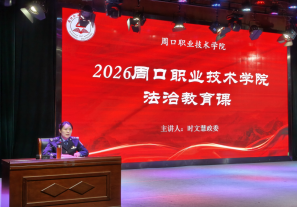 为进一步增强学生的法治观念,引导学生树立正确的法治价值观。3月31日,周口职业技术学院于励德厅开展法治教育专题讲座。我院学生代表共同参与此次法治学习活动,本次讲座特邀周口市时文慧政委担任主讲人,为同学们带来法治教育课堂。