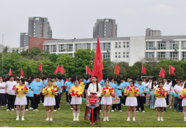 预演现场,我院方阵迈着整齐铿锵的步伐入场。旗手高举院旗,队员们身着统一服装,手持特色标语牌,精神抖擞、气势昂扬,嘹亮口号响彻赛场。绿茵场旁,啦啦队员们手持花束整齐列队,为方阵助威,成为一道亮眼风景。