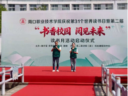 为迎接第31个世界读书日,深入推进校园文化建设,营造浓郁书香氛围,4月23日上午,周口职业技术学院庆祝第31个世界读书日暨首届“书香校园 阅见未来”读书月启动仪式在开元校区湖心广场隆重举行。汽车与机电工程学院积极响应学校号召,组织学院师生代表齐聚活动现场,开启校园阅读新征程。